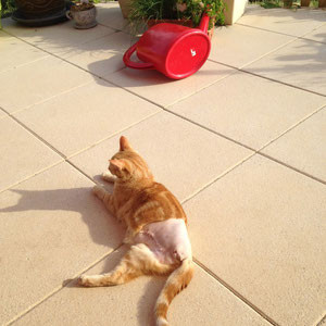 Après l'opération, la fièvre est restée 4 jours, mais la minette déprimait, on a décidé de la ramener…au calme.