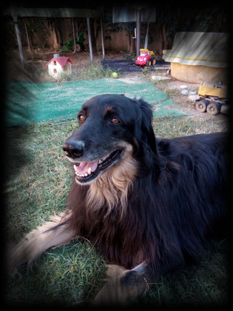 Tout a commencé il y a un peu plus de 9 ans (et 7 mois exactement), nous avions décidé de prendre un grand chien avec Denis, nous nous sommes renseignés sur les races, et nous avons eu le coup de cœur pour le Hovawart. Nous avons cherché un élevage pour recueillir des renseignements sur la race et nous sommes allés sur Aix en Provence, chez Mireille, qui a réussi à nous faire partager sa passion pour cette race. Quelques mois plus tard, nous adoptions, une magnifique femelle noire et feu, une vraie chance car une seule dans la portée et nous voulions de préférence une femelle (plus douce avec les enfants, moins dominante) et noire et feu pour le joli mélange !
